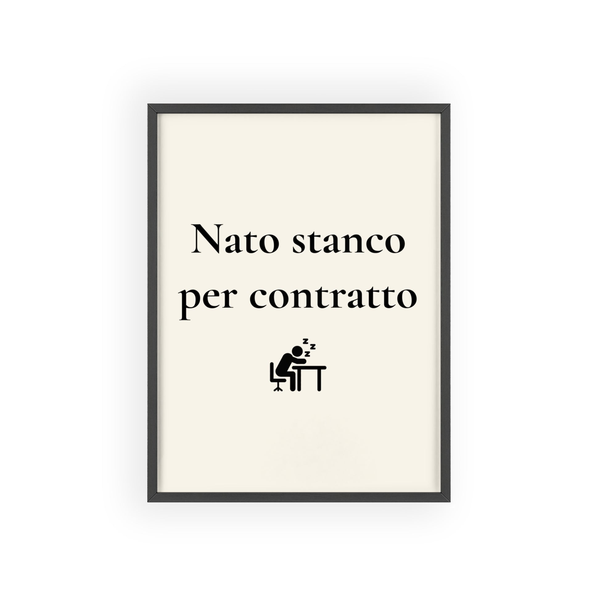 Questa frase racconta la verità stanca e ironica di chi lavora, vive, e lotta contro la sveglia ogni mattina. Minimal, tipografico, irresistibilmente onesto.